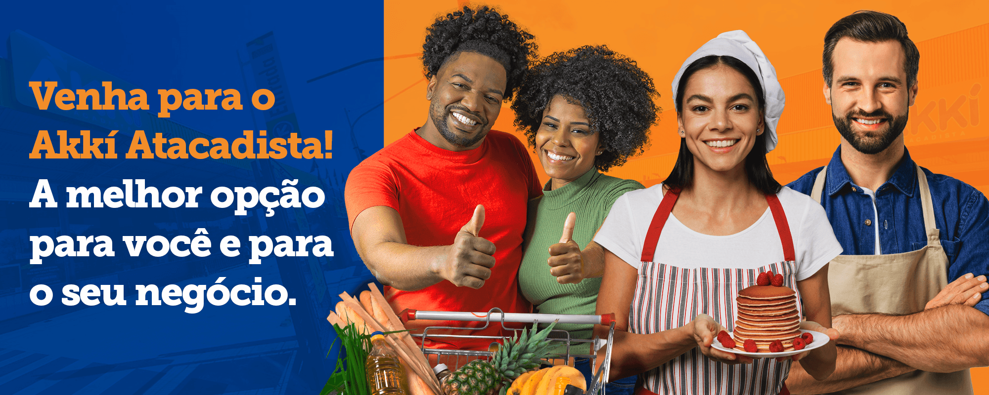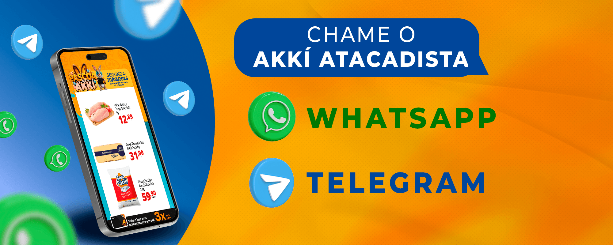 Qualidade, variedade e economia em um só lugar! Quem compara compra Akkí! Faça Parte do Cluber de ofertas descontos exclusivosPARA VOCÊ economizar e sem cobrança de anuidade Até 45 dias para pagar! Parcelamentos exclusivos Saque emegencial! Pague o preço do atacado a partir da primeira unidade Localize a loja mais próxima e venha para a Akkí! Venha fazer parte da família Akkí atacadista! Clique Aqui e Junte-se ao nosso time e faça parte do nosso sucesso!